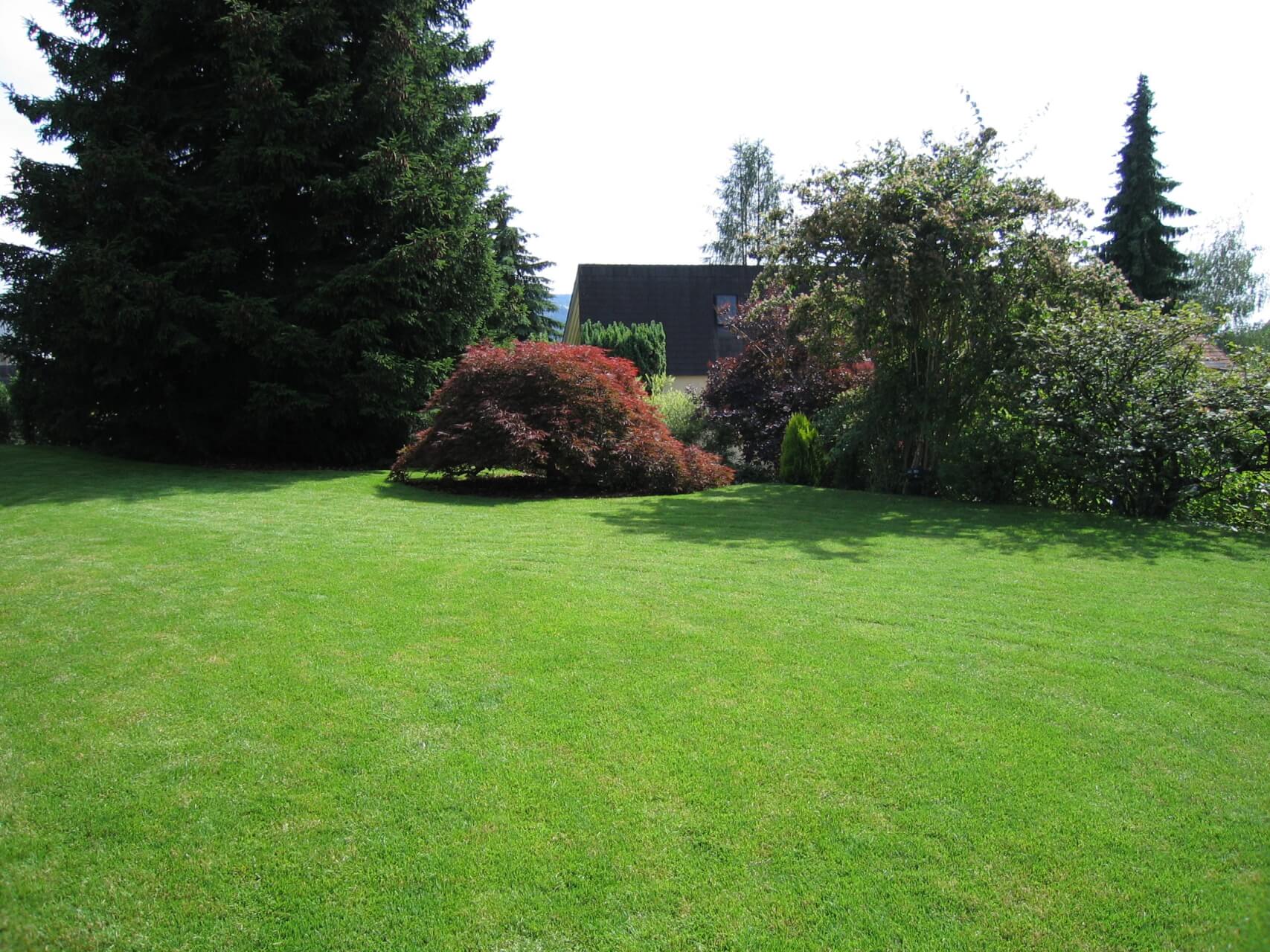 Der ideale Zeitpunkt für das Vertikutieren liegt im Frühjahr zwischen März und Mai – alternativ, je nach Witterung, auch im Frühherbst. Entscheidend ist, dass der Rasen trocken ist und bereits ausreichend Wuchshöhe erreicht hat. Vorab wird die Fläche gemäht, damit Rasenfilz und Moos beim Vertikutieren effektiv entfernt werden können. Oft empfiehlt es sich, diese Pflegemassnahme zu nutzen, um Unebenheiten auszugleichen, kahle Stellen nachzusäen und den Rasen gezielt zu düngen. So erhält die Fläche optimale Bedingungen für eine nachhaltige Regeneration. Bereits nach wenigen Wochen wird der Unterschied sichtbar: Der Rasen wächst dichter, kräftiger und widerstandsfähiger nach. Moos und Unkraut haben es künftig deutlich schwerer. Aus einer verfilzten Fläche entsteht Schritt für Schritt wieder ein vitales, sattgrünes Gesamtbild – fast wie ein kleines Golfgreen im eigenen Garten.